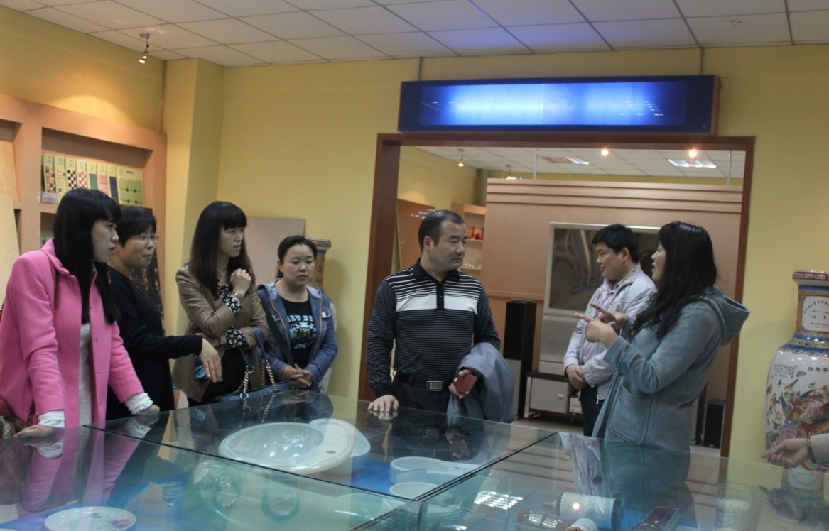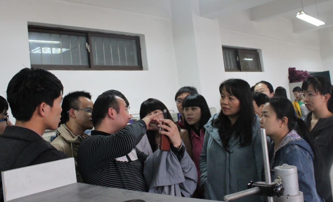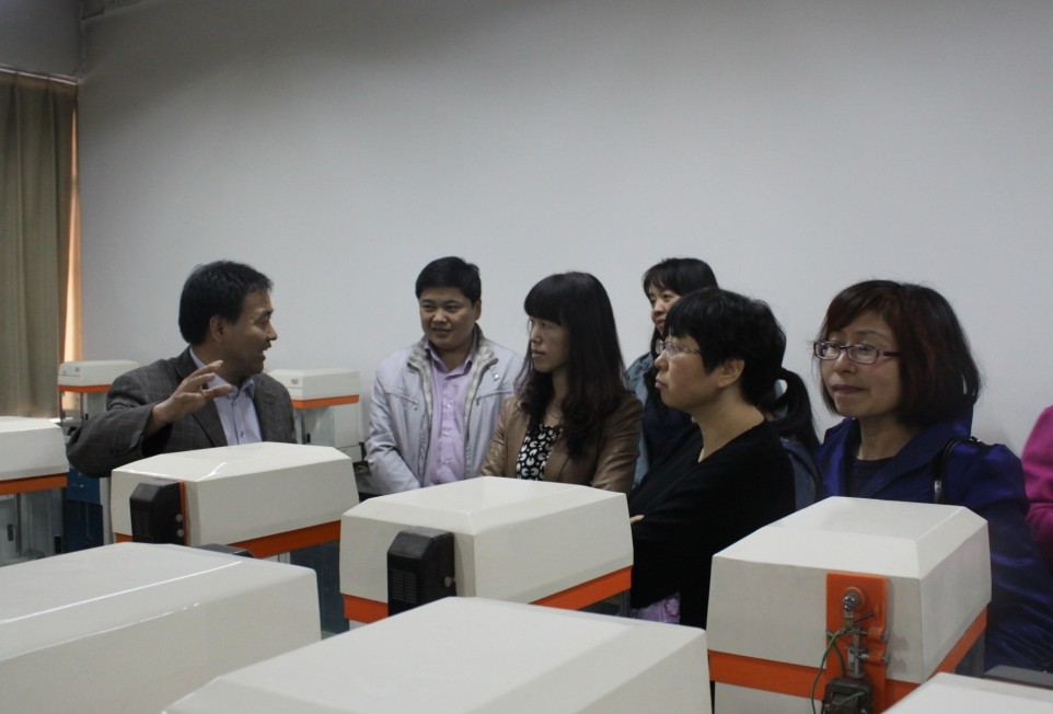 首先,我院领导及教师在材料学院副院长殷立雄的带领下参观了材料与工程学院陶瓷与玻璃重点实验室,学院特色展室。我院教师对于瓷质品的生产过程产生了浓厚的兴趣,并对真空手套箱、同步热分析仪、X光衍射仪、Bruker V70傅里叶变换红外光谱分析仪等仪器,在按键和具体使用过程中的具体英文翻译做了具体的询问学习。