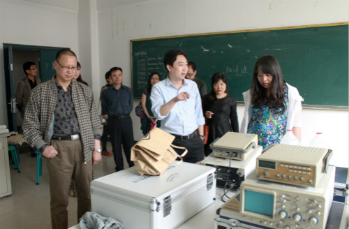 我院领导及教师在电信学院副院长李健的带领下参观了电信学院实验室。参观过程中,李健老师认真介绍了电信学院现阶段的发展和专业课程设置方面的基本情况,对于学院内建立的DSP实验室,高频电路实验室,通信原理实验室,计算机网络工程实验室进行了详细讲解。另外,还带领我院领导及教师参观了别具特色的皮肤听声研究所。
